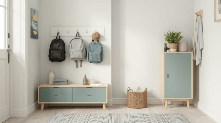 Commencez par retirer les objets hors saison : chaussures d’été, vestes légères, accessoires inutiles. Rangez uniquement ce dont vous avez besoin au quotidien. Ensuite, investissez dans des rangements pratiques : paniers, patères, étagères à chaussures.